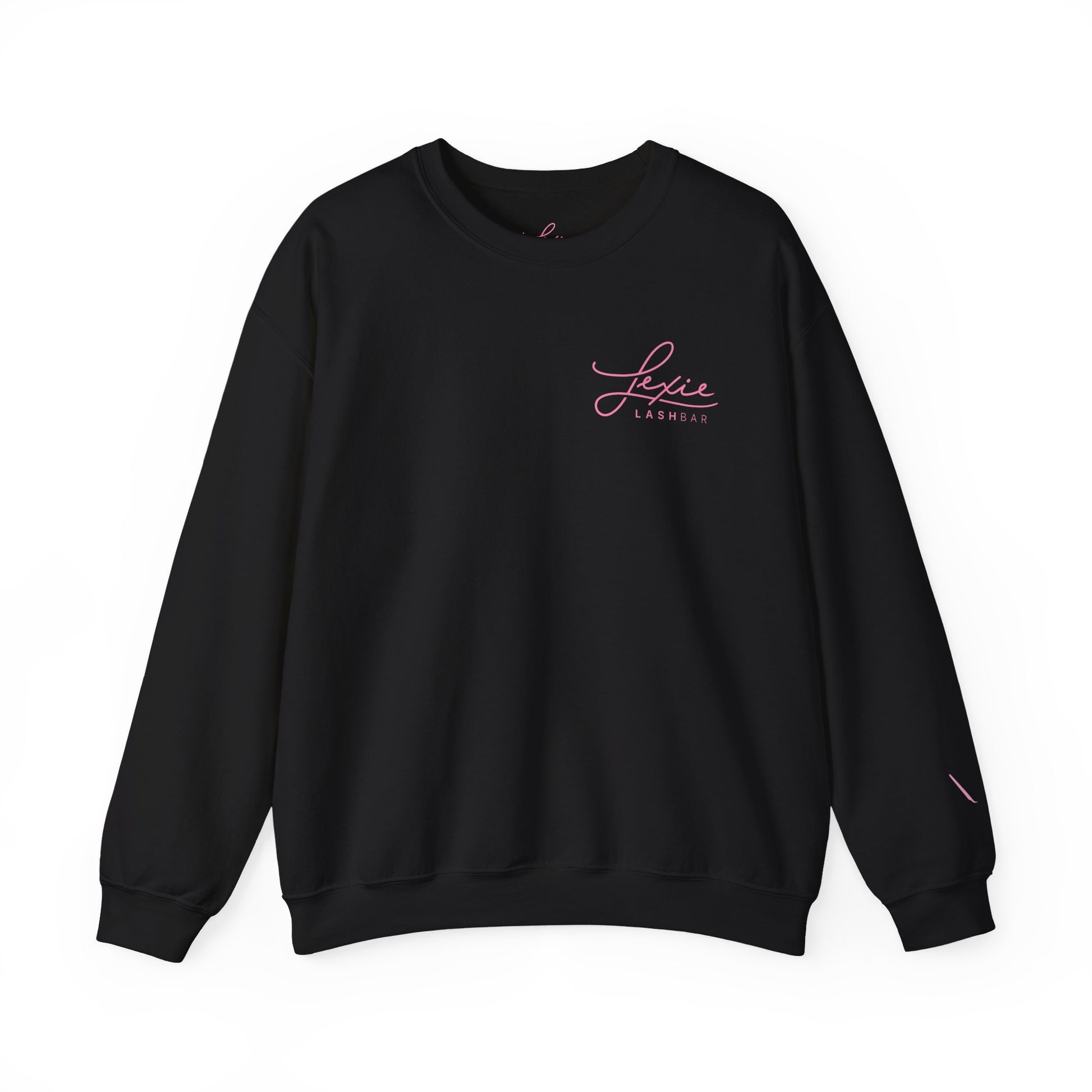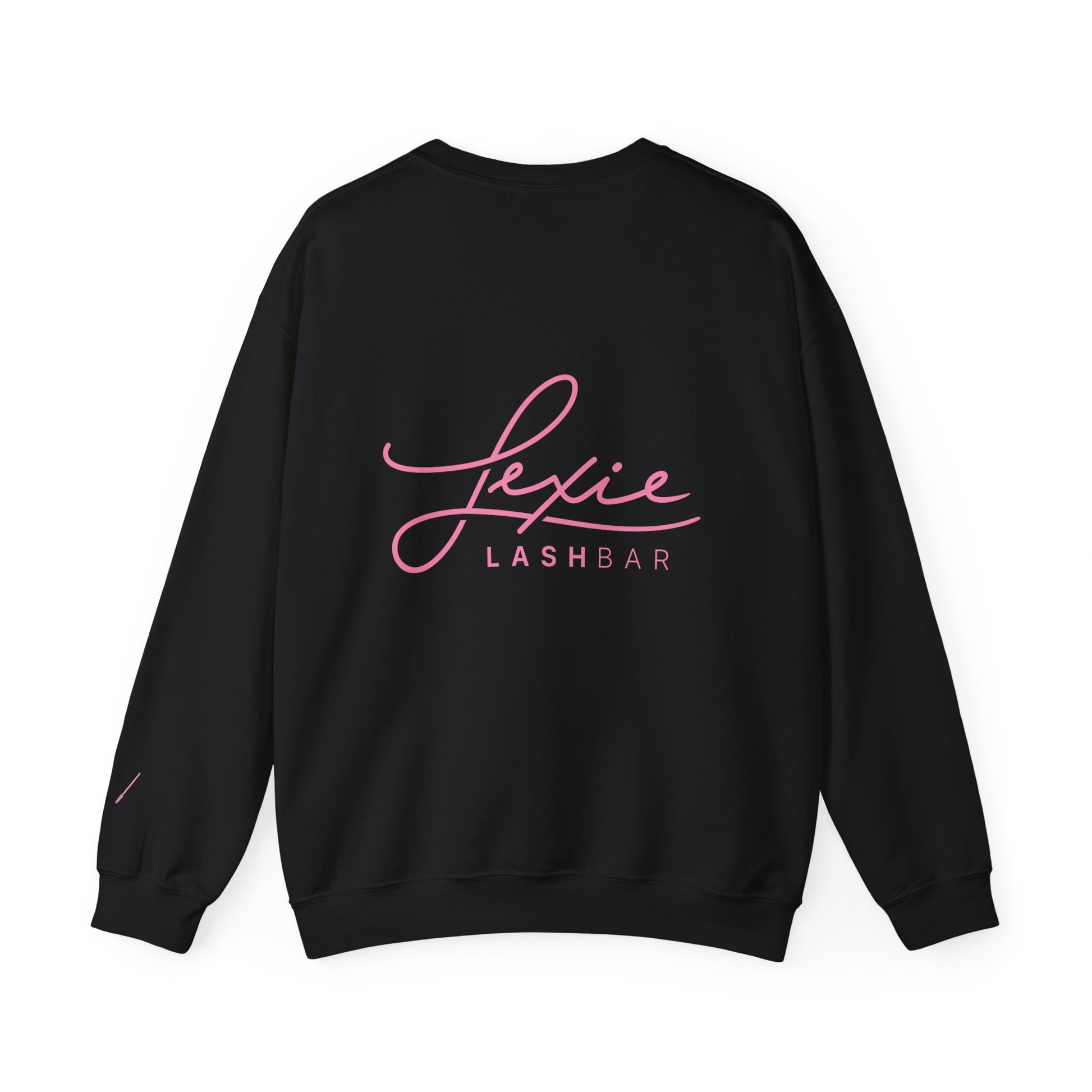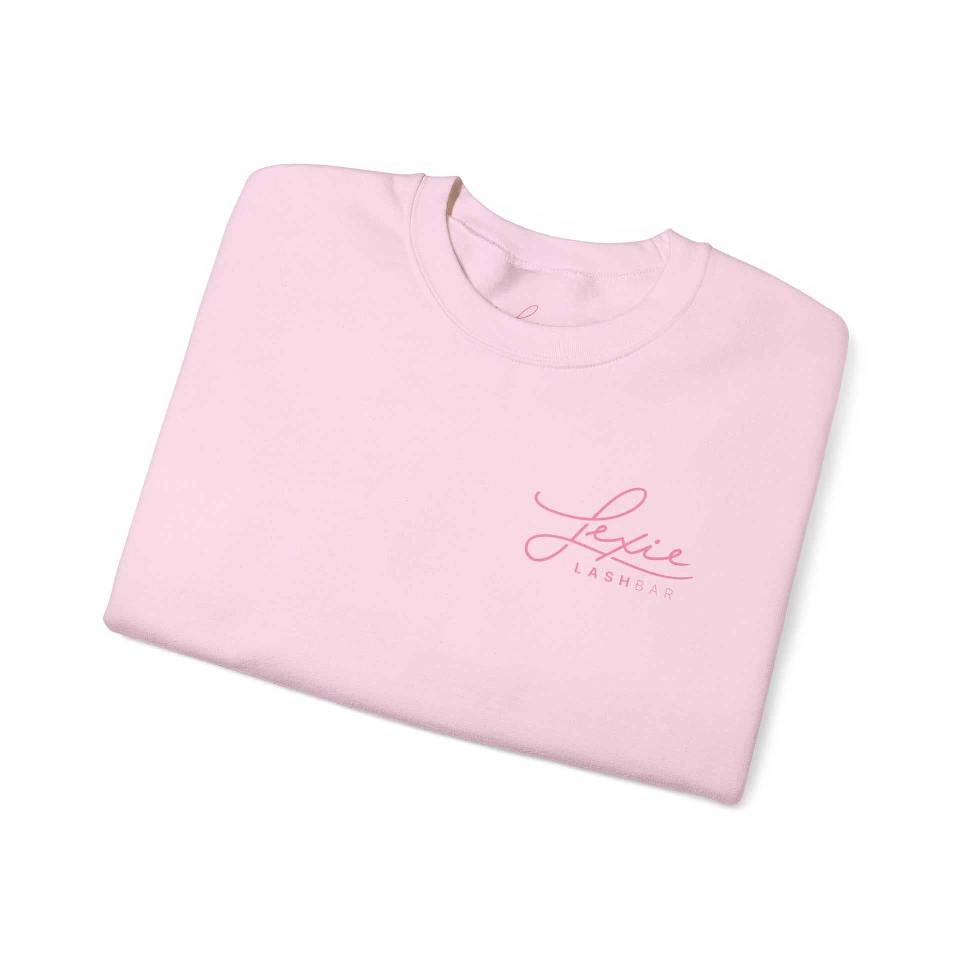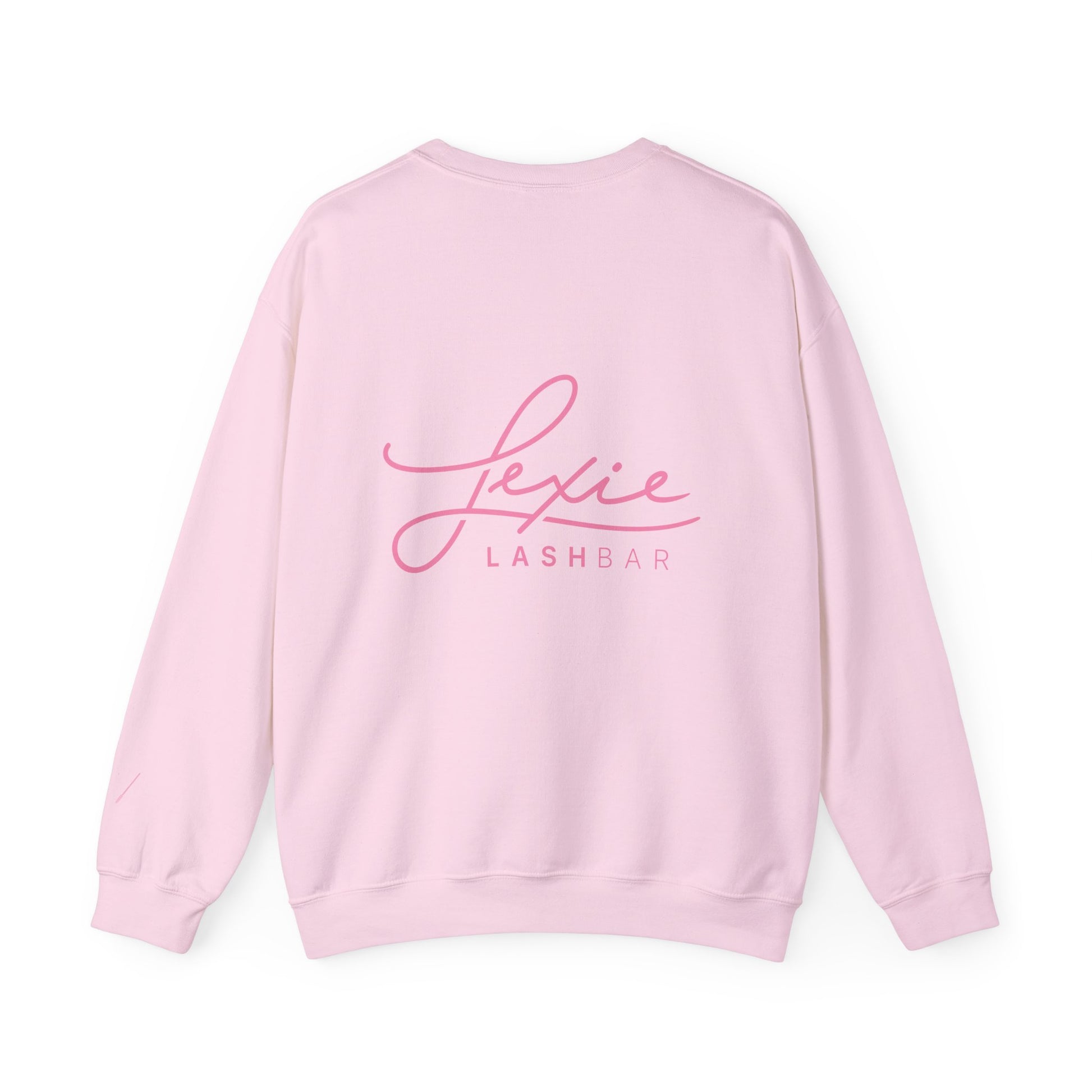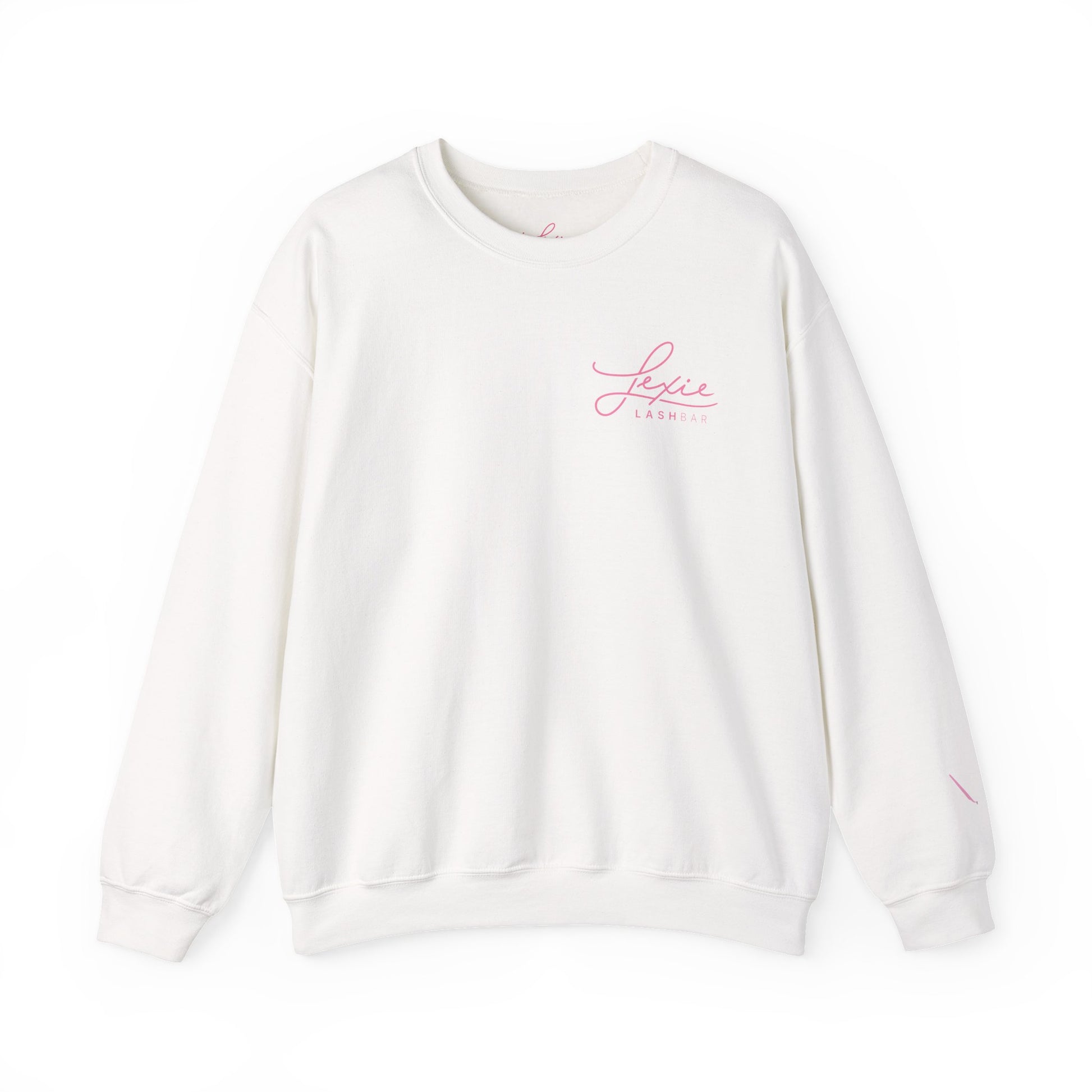Lashbar Logo Crewneck Sweatshirt — White with Pink "Lexie Lashbar" Script